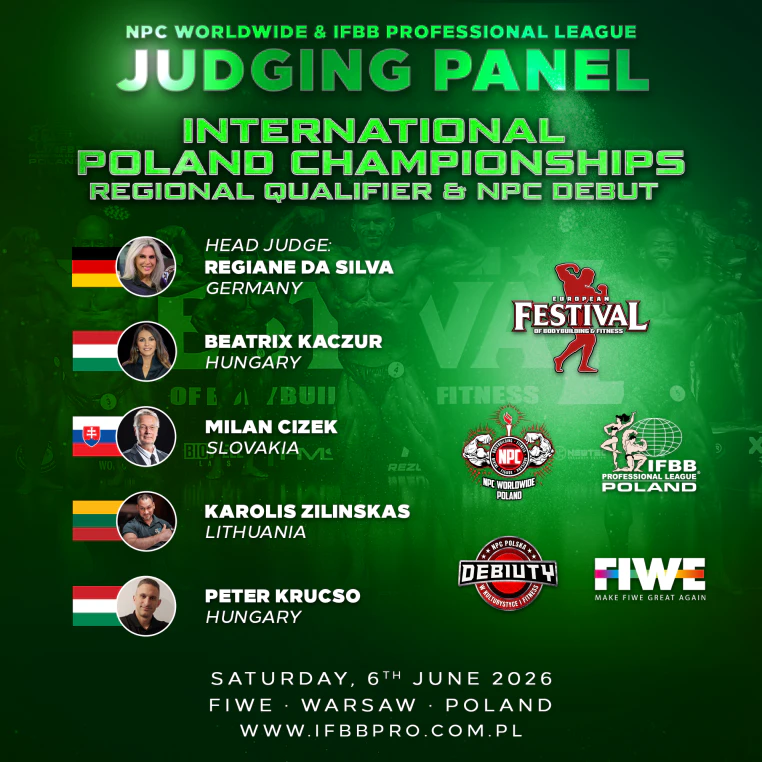 Zapraszam Cię na sześć kolejnych edycji Europejskiego Festiwalu Sportów Sylwetkowych w roku 2026. Pięć